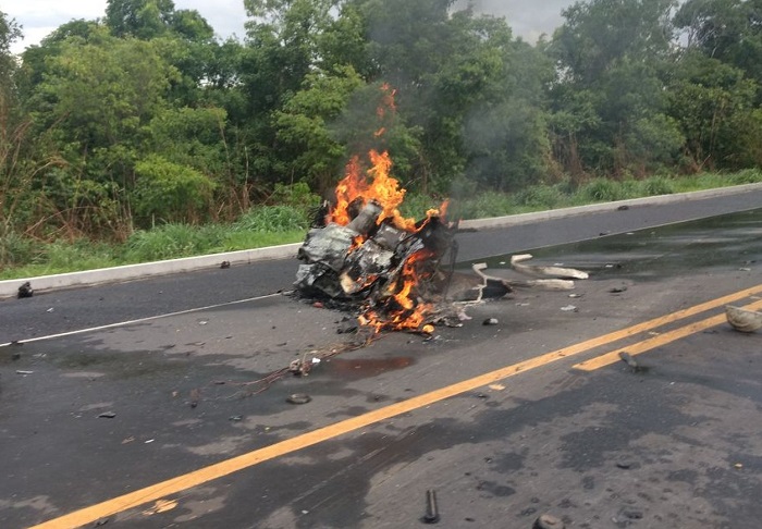 Um motorista de 43 anos, de nome não informado, morreu após o carro em que ele estava bater em um caminhão e pegar fogo. A batida foi no km 386 da BR-153, perto de Rio dos Bois. A Polícia Rodoviária Federal informou que o veículo invadiu a contramão e rodou na pista.