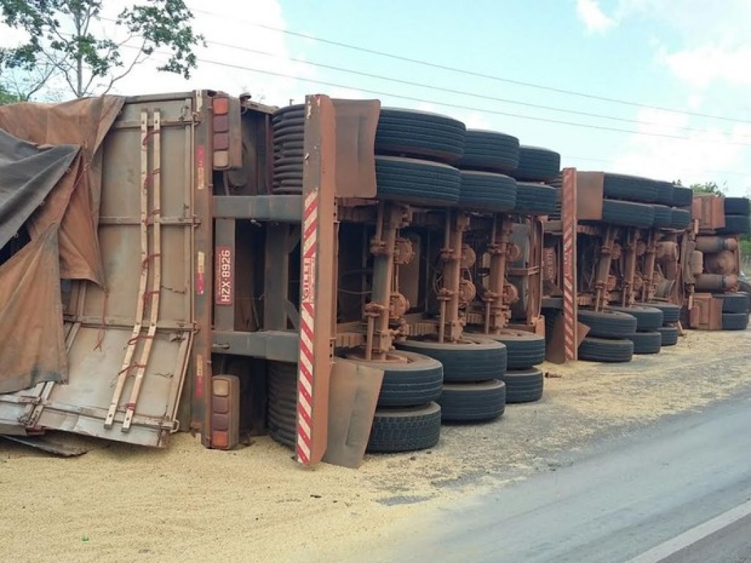 Um caminhão tombou na PA-287, Km-76, no sentido Redenção/Conceição do Araguaia. O motorista perdeu o controle de um veículo que transportava soja e acabou tombando na pista. O condutor sofreu algumas escoriações no antebraço e ninguém mais ficou ferido.