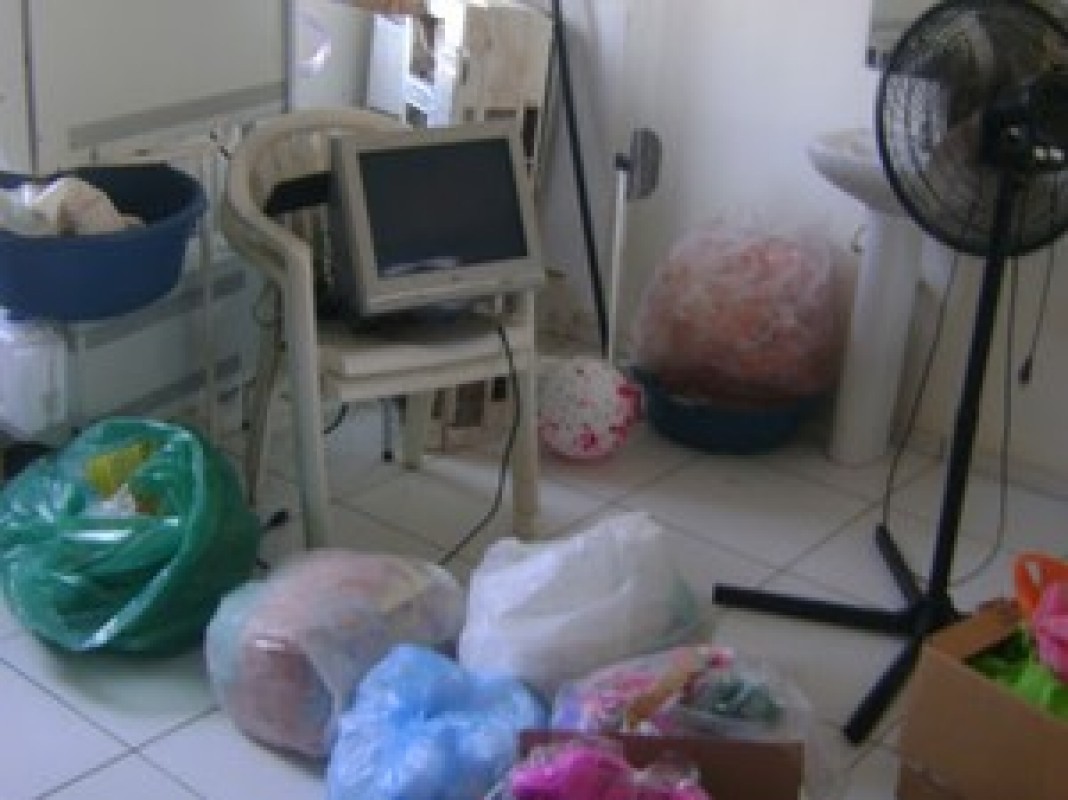 Além disso, o banheiro dos deficientes está desativado, não possui barras nem travas nas portas. A farmácia da unidade de saúde também está com problemas estruturais, já que a central de ar não funciona e se encontra com sérios vazamentos, comprometendo a conservação dos medicamentos.