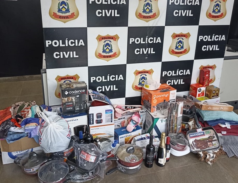 De imediato, os agentes foram até o local e conseguiram localizar a mulher que já estava próxima de sua residência. Questionada sobre os fatos, a mulher negou a autoria dos delitos, mas permitiu que os agentes entrassem em sua casa. Após buscas, os policiais encontraram acondicionados em um dos cômodos da residência, dezenas de objetos, incluindo panelas, frigideira, cafeterias, tapetes, roupas dentre outros itens, avaliados em mais de R $10 mil reais.