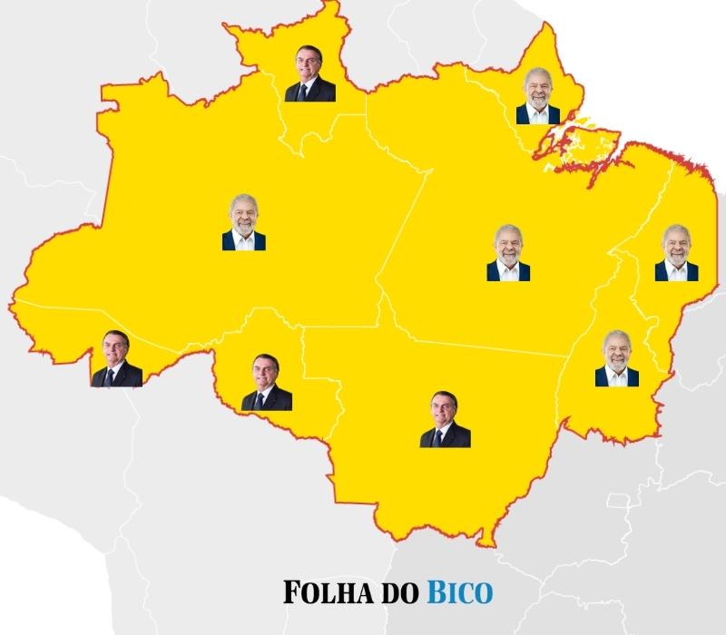 Lula venceu no Amapá, Amazona, Maranhão, Pará e Tocantins. Já Bolsonaro no Acre, Mato Grosso, Rondônia e Roraima.