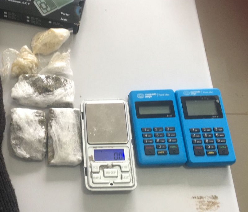 Conforme o delegado-chefe da unidade policial, Diogo Fonseca, durante a abordagem foram encontradas, em poder do autor, porções de maconha, cocaína e crack, além de balança de precisão, máquinas de cartão de crédito e outros aparatos usados no comércio ilícito.