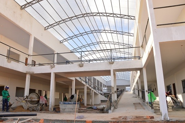 São 12 salas de aula, em dois andares, além de sala de informática, dos professores, de planejamento pedagógico, refeitório e quadra poliesportiva coberta.