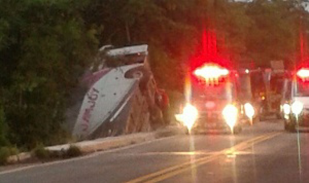 Na madrugada desta terça-feira (16), um ônibus da empresa Janjoy, caiu na ribanceira na BR-010.