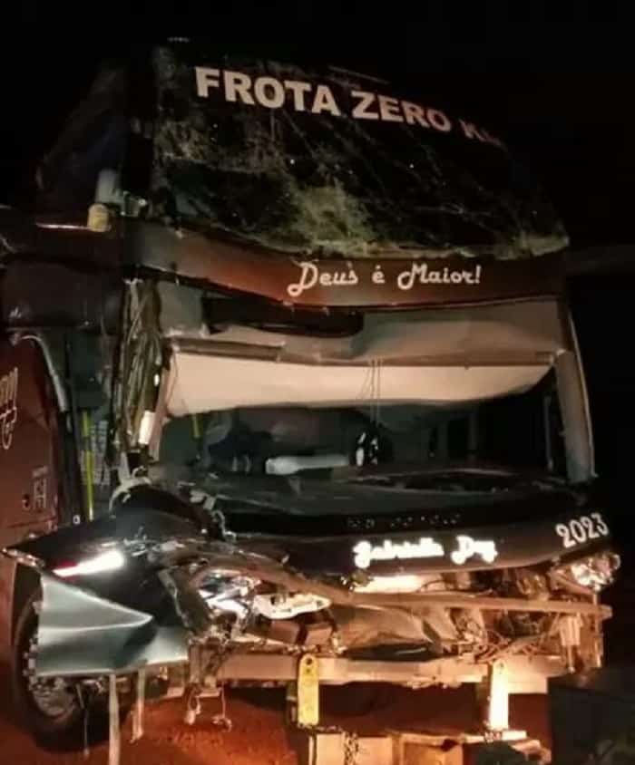 Um ônibus da empresa Gabriely Day que faz linha do Bico do Papagaio para Goiânia-GO, se envolveu em um acidente com um caminhão carregado de madeira, rodovia BR-153 na região sul do Tocantins, próximo ao rio Dueré.