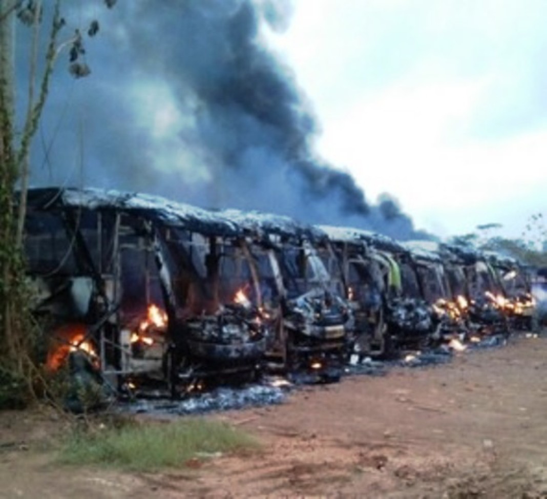 Sete ônibus da empresa Transbrasiliana foram incendiados na garagem da empresa, no inicio da manhã deste sábado (12), em Altamira, sudoeste do Pará.