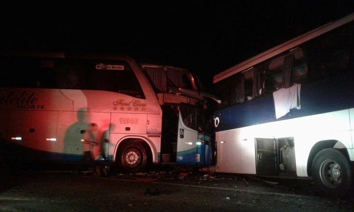 Duas pessoas morreram e nove ficaram feridas em um acidente envolvendo dois ônibus, na madrugada deste domingo (23), na BR-153, entre Alvorada e Talismã, região Sul do Tocantins. Conforme a Polícia Rodoviária Federal, o ônibus da empresa Satélite que seguia viagem de Goiânia-GO para Teresina-PI, tentou desviar de uma árvore e invadiu a pista contrária batendo de frente com um ônibus da Viação Planalto, que seguia de Palmas para Santa Maria-RS.