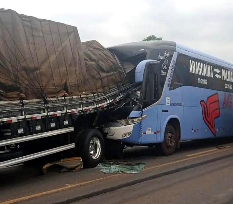 O acidente foi com um ônibus que faz linha entre Palmas e Araguaína. Conforme a Polícia Rodoviária Federal (PRF), a batida aconteceu por volta de 5h na altura do km 152. Imagens feitas no local monstram que toda a cabine do ônibus ficou totalmente destruída após o impacto.