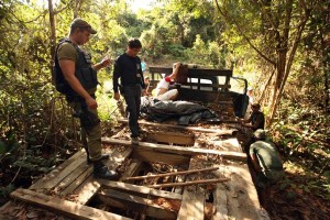 Entre as áreas exploradas está uma próximo a comunidade Mirizal. Uma estrada aberta, ainda com rastros de caminhões, levou a equipe até um caminhão abandonado, ainda com carotes de gasolina. A Polícia afirma que o veículo era utilizado para o transporte de toras. Uma carroceria e tanque para levar diesel para os equipamentos também foram abandonados. Alguns quilômetros à frente, um acampamento completo foi encontrado. Segundo os peritos do CPC, o local tinha uma boa infraestrutura, com eletrodomésticos e mantimentos, e parecia ter sido abandonado às pressas.