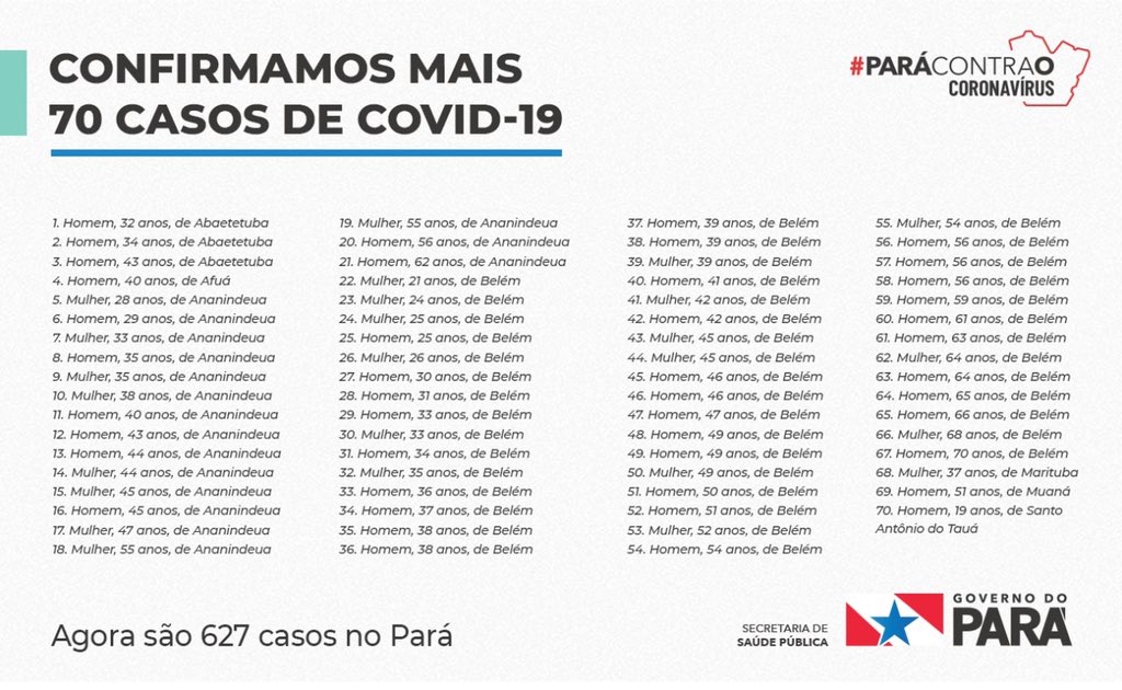 Publicidade Publicidade PA confirma nesta sexta, 17, mais 70 casos de coronavírus. Agora são 627 no estado By Folha do Bico 17 de abril de 2020 0 1393 Share WhatsAppPrintTelegramFacebookTwitterCopy URL Folha do Bico Noticias Relacionadas Estado afirma adotar medidas para restabelecer serviços do Servir 15 de janeiro de 2026 Tocantins supera meta nacional e atinge alta cobertura vacinal contra brucelose 15 de janeiro de 2026 Orçamento estadual de 2026 cresce 12,6% e alcança R$ 19,58 bilhões 15 de janeiro de 2026 Share WhatsAppPrintTelegramFacebookTwitterCopy URL Previous articleTO vai a 32 casos de coronavírusNext articlePARAUAPEBAS: Município tem quarta morte por coronavírus - Advertisement - - Advertisement - Ultimas noticias SÃO BENTO: Escola Vitória de França começa a receber revitalização completa com foco em elevar o padrão de ensino 15 de janeiro de 2026 ARAGUATINS: Governador Wanderlei recebe Aquiles e discutem hospital materno e TO-010 15 de janeiro de 2026 SÃO BENTO: Droga e dinheiro são encontrados durante abordagem de meliante no bairro São Francisco 15 de janeiro de 2026 IMPERATRIZ: Prefeitura publica decreto com calendário de feriados e pontos facultativos de 2026 15 de janeiro de 2026