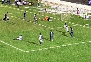 Mas, ao final do primeiro tempo, o time alvinegro recuperou as rédeas do jogo, explorando os cruzamentos na área, tanto que aos 42 minutos o atacante Zé Rodrigues cabeceou a bola para o fundo do barbante, 1 a 0 São Raimundo.