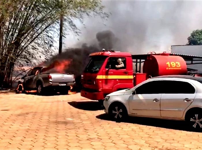 Por volta das 12h30, mais uma ocorrência de incêndio florestal e o deslocamento de outra equipe, agora para o Rodoposto, na marginal esquerda, no sentido sul de Palmas. O fogo, que já estava queimando a região, se aproximou do estacionamento do estabelecimento comercial. Dois veículos que estavam beirando o meio fio foram incendiados.