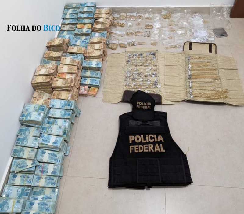 Instantes prévios à detenção, a Polícia Federal localizou uma residência utilizada como refúgio, onde foram descobertas numerosas bolsas e caixas repletas de dinheiro e joias.