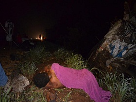 De acordo com a PRF, o motorista do ônibus, Wanderllei Moreira da Cruz, 49 anos, estava trabalhando embaixo do veículo, quando houve a colisão e morreu no local. Os dois motoristas dos caminhões ficaram feridos e o mecânico saiu ileso. Outras 12 pessoas, que estavam no ônibus também tiveram ferimentos.