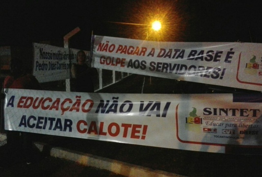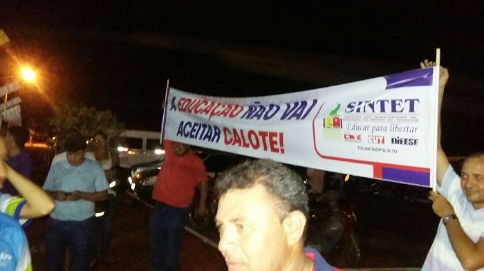 Para terminar de piorar o fiasco da visita, cerca de 70 professores da rede estadual de ensino, haviam preparado um protesto para cobrar de Miranda, o pagamento da Data-Base e das progressões. A equipe de segurança do Governo do Estado, ainda tentou mudar a rota de trajeto, mas como eram muitos professores, comparado ao pequeno número da caravana de Miranda, a segurança resolveu então forçar a saída dos protestantes que sob ameaças, deixaram as dependências da Feapa, mas se mantiveram do lado de fora, aguardando a saída de Marcelo Miranda.