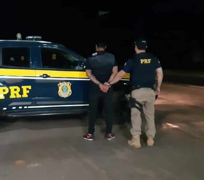 A prisão aconteceu na noite desta sexta-feira (23), quando os passageiros do ônibus entregaram os documentos à equipe da PRF. Um deles estava foragido desde 2014, quando teve a prisão preventiva decretada por porte ilegal de arma de fogo.