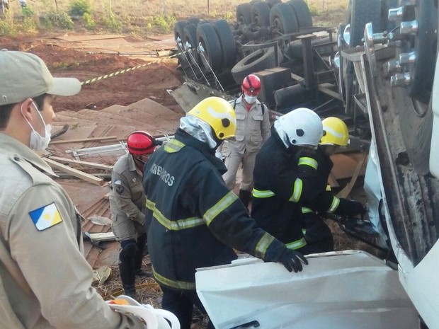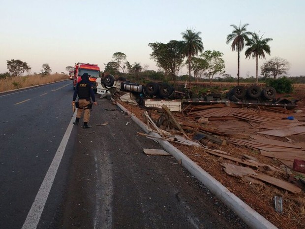 A Polícia Rodoviária Federal informou que o veículo saiu da pista e capotou por volta das 4h50. A suspeita é que o motorista tenha dormido ao volante. O veículo estava carregado de compensado.