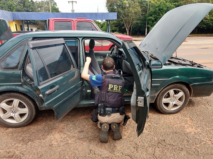 A equipe da PRF, durante fiscalização de rotina, deu ordem de parada ao veículo VW/Santana 2.0, o condutor, no entanto, parou apenas vários metros do local determinado para parada. Ato contínuo, ao ser abordado pela equipe apresentou grande nervosismo, atitudes que geraram suspeita da equipe da PRF.