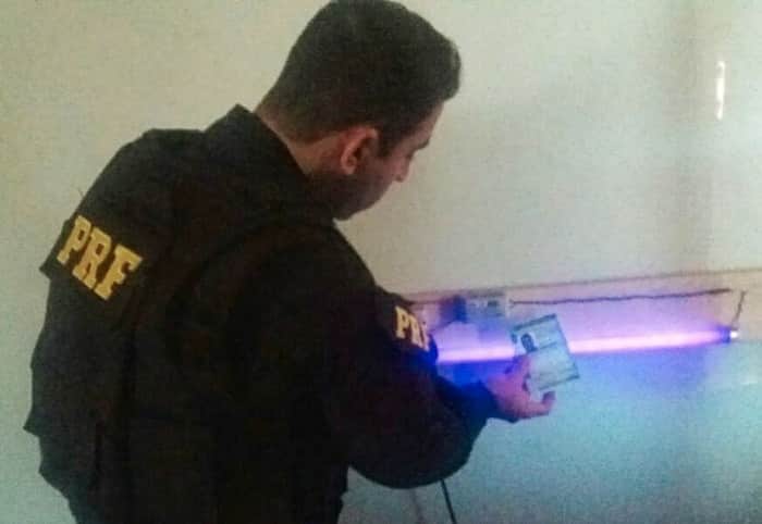 A Polícia Rodoviária Federal (PRF) identificou a falsificação da CNH após consultar os sistemas e comparar os dados com os demais documentos pessoais apresentados pelo condutor.