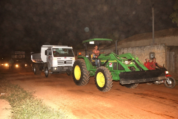 À noite, a governadora participou da cerimônia de entrega para a Prefeitura de Rio Maria de patrulha mecanizada, composta por uma caçamba, uma pá carregadeira, uma motoniveladora e um trator.