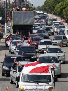 No início e ao final do movimento, o Hino do Pará ecoou em três trios elétricos que animavam os participantes. Zenaldo Coutinho, presidente da Frente contra Carajás, avaliou o movimento como ‘espetacular’. ‘Eu achei um espetáculo! A adesão foi maciça da população e olha que essa é apenas nossa primeira carreata e já percebemos a aceitação de toda a população’, disse.