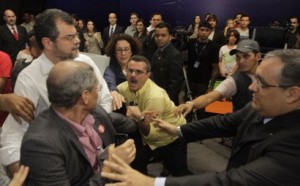 Um debate televisivo na noite desta segunda-feira, 18, entre os candidatos ao governo do Pará terminou em confusão e empurra-empurra entre membros das campanhas de Simão Jatene (PSDB) e da governadora Ana Júlia Carepa (PT).