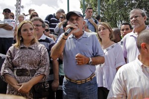 O município de Abaetetuba, no nordeste paraense, completou 116 anos de emancipação nesta segunda-feira, 15, e a programação de aniversário, organizada pela Prefeitura, contou com a presença de um convidado muito especial. O governador Simão Jatene chegou de surpresa, pela manhã, acompanhado de uma comitiva formada por secretários de Estado, e foi recepcionado pela prefeita Francinete Carvalho. “Fizemos um convite formal para que ele participasse das comemorações, mas pensávamos que ele não viria. É uma alegria poder ter o governador conosco neste dia!”