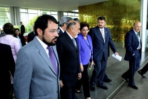 O Governador do Pará, Simão Jatene, esteve reunido nesta quarta-feira (15) com a Presidente Dilma Rousseff, em Brasília, integrando uma comitiva formada por todos os governadores dos Estados do Norte e Nordeste. Eles levaram uma carta com dez pontos que atendem interesses comuns para as duas regiões na proposta de reforma tributária no país, classificada como urgente pelos chefes dos executivos estaduais. A mesma proposta foi levada ao Presidente do Congresso, senador José Sarney, logo após a reunião no Palácio da Alvorada. A agenda de reuniões começou por volta das 9h.