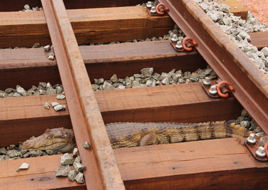 Algumas pessoas que apareceram no local já falavam em matar o jacaré para tirar o coro para vender e comer a carne no “trisca”. O réptil provavelmente saiu da lagoa que fica ali ao lado por ocasião da forte chuva da noite anterior e acabou ficando preso no trilho do trem. Com respiração ofegante, ele parecia estar cansado e a pele estava ressecada, em função do sol quente. (Correio Tocantins)