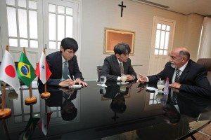 O estreitamento dos laços culturais e o fortalecimento das parcerias entre o Japão e o Pará foram os objetivos do encontro entre o governador Simão Jatene e o novo cônsul geral do Japão, Yukio Numata, no Comando Geral da Polícia Militar, na tarde desta segunda-feira (3). A audiência do diplomata com o chefe do Executivo representou um novo passo na implantação do Sistema Integrado de Transporte Metropolitano, que inclui as obras viárias do projeto Ação Metrópole.