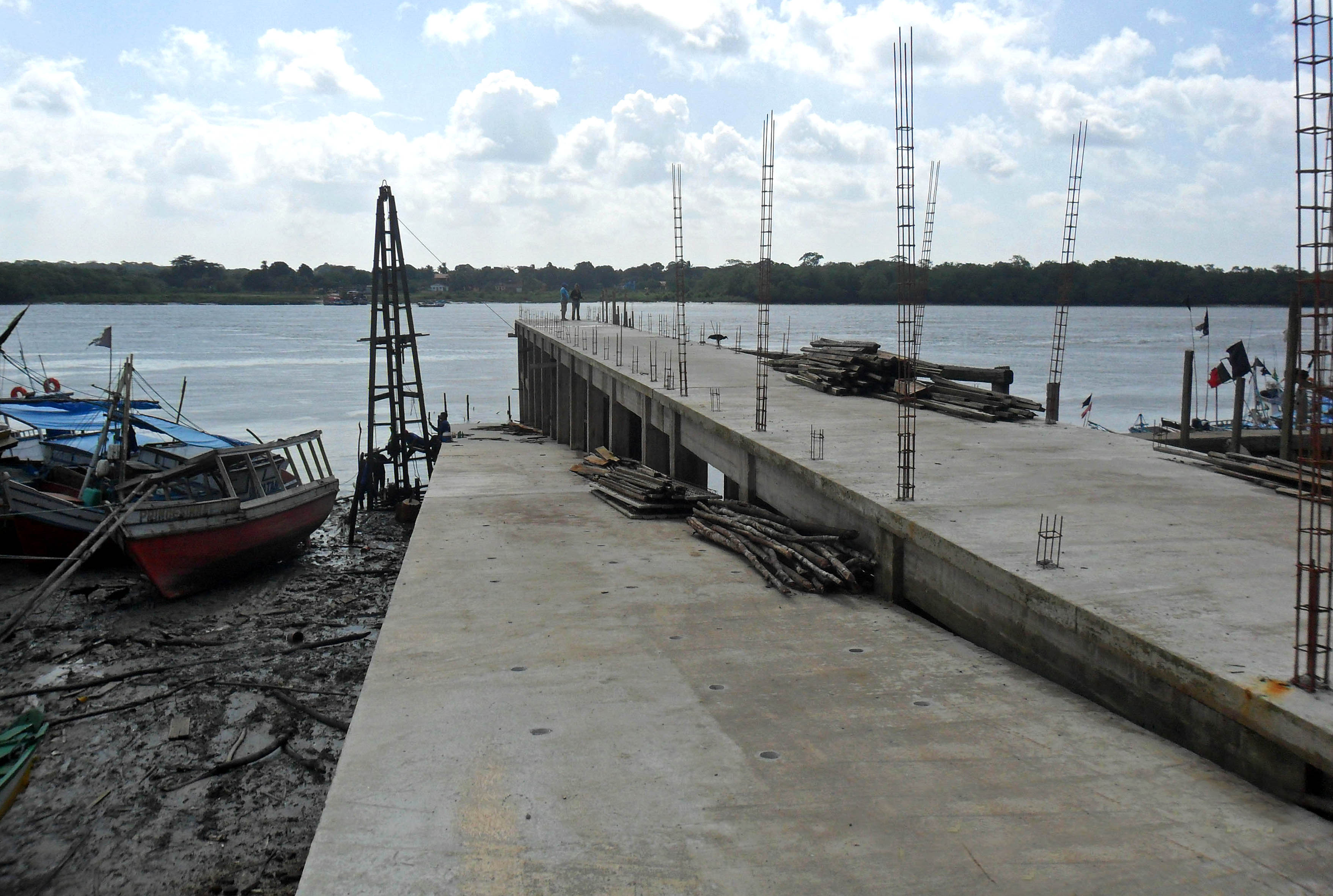 Um muro de arrimo está sendo erguido na orla da cidade de Igarapé-Miri, no Baixo Tocantins, para conter a erosão na principal avenida da cidade, e também um novo trapiche, com rampa em concreto.