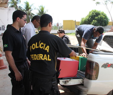 As investigações foram realizadas pelo Ministério Público Federal em conjunto com a CGU e a Polícia Federal. A operação conta com um efetivo de 24 policiais federais e seis analistas e técnicos da CGU e teve como alvos a sede da Prefeitura de São Domingos do Araguaia, as secretarias de Educação, Saúde, Transportes e Obras e Ação Social, além de residências de secretários municipais. (Fotos: Ulisses Pompeu)