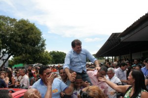 Ao desembarcar, o prefeito foi carregado nos ombros por alguns simpatizantes e levado para a carroceria de uma caminhonete. O carro deu meia volta no estacionamento do aeroporto, onde parou e o prefeito fez um discurso as pessoas ali presentes, com auxílio de um carro de som. Chorou e, evocando várias vezes Deus como o seu protetor, disse que seus adversários tentaram afastá-lo do cargo, mas não conseguiram.