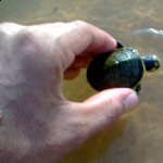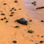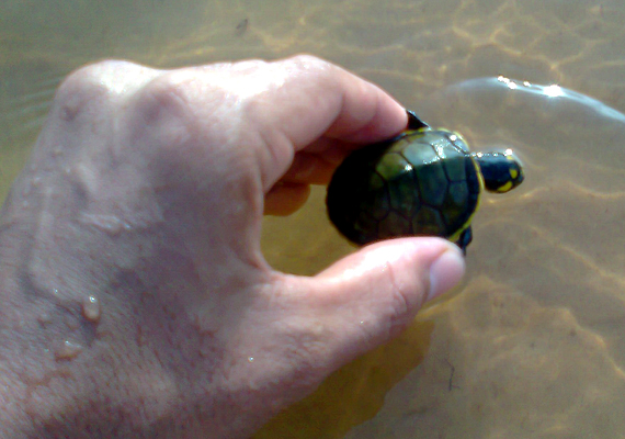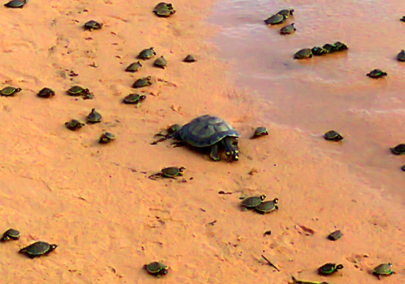 Cerca de três meses depois, os primeiros ovos começaram a eclodir e os tracajás começaram a ser separados em um curral para que fossem soltos todos de uma vez. (Portal ORM / Fotos: Diogo Augusto)