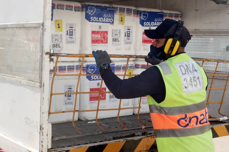 O Pará recebeu na tarde desta quarta-feira (2), mais uma remessa de vacinas contra a Covid-19. Trata-se da vigésima sétima com 215.750 doses da Oxford/AstraZeneca. Até o momento, o Pará recebeu do Ministério da Saúde 3.327.390 doses, sendo 1.239.440 da CoronaVac, 1.994.350 da Oxford/AstraZeneca e 93.600 da Pfizer.