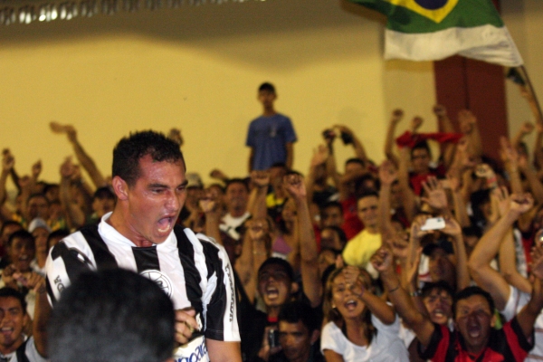 Jogador Branco, autor do gol da vitória do São Raimundo por 1 x 0 contra o Botafogo do Rio de Janeiro, pela Copa do Brasil, na noite desta quarta-feira (10), no estádio Colosso do Tapajós em Santarém.