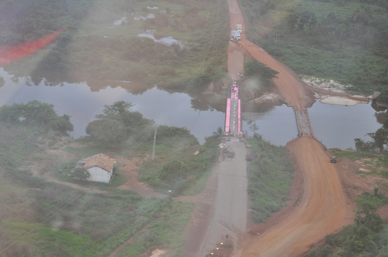 Por enquanto os carros estão passando sobre uma ponte improvisada feita de madeira, cuja água do rio já está quase passando por cima. “Se a chuva continuar caindo na região, principalmente na parte sul do rio, logo essa ponte ficará submersa”, disse o caminhoneiro Odair Cardoso de Melo, que trafega pela região há 30 anos.