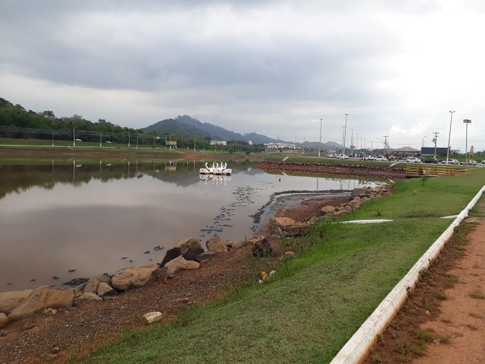 Um dos cartões postais de Parauapebas, município na região de Carajás, no estado do Pará, o Lago da Nova Carajás, que fica as margens da rodovia PA-275, está quase seco.