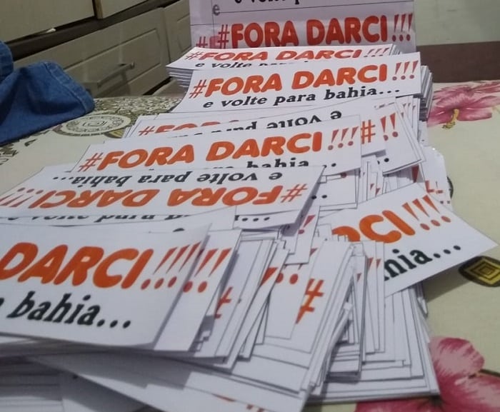 Agora, o grupo prepara uma nova distribuição de adesivos “Fora Darci e volte para Bahia”. Os interessados devem procurar o líder Erick Ramos, pelo zap (94) 99972-6006.