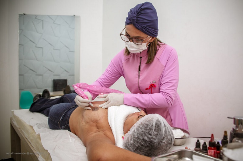 Por meio da micropigmentação paramédica, as pacientes têm reconstruído os seus mamilos e aréolas dos seios. “Nosso objetivo é trazer a autoestima para mulheres que tiveram o câncer e perderam uma referência do ser corpo”, afirma Lídice Marques, idealizadora do projeto, em parceria com a Secretaria Municipal da Mulher (Semmu) e o Instituto Vencendo o Câncer (Ivecan).