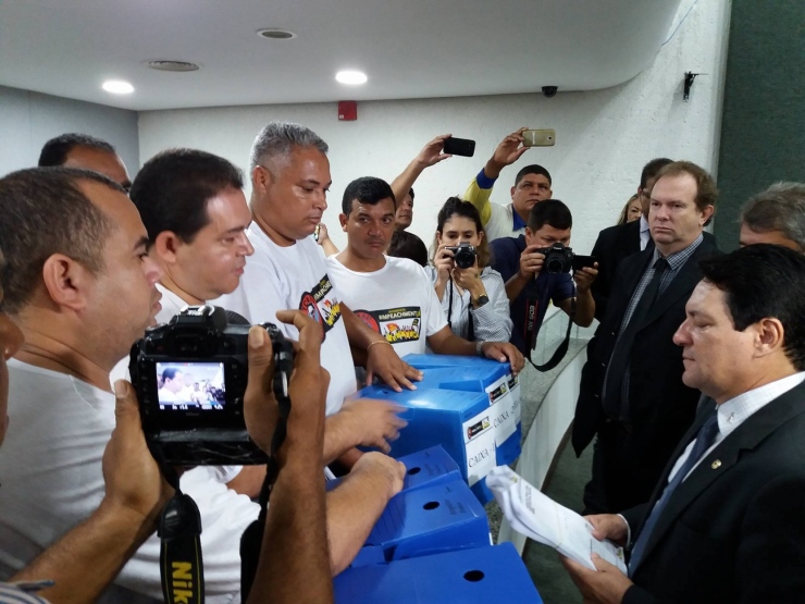 O documento foi entregue simbolicamente pelo presidente do Sindicato dos Servidores Públicos (Sisepe), Cleiton Pinheiro ao presidente da AL, o deputado Osires Damaso (PSC). Posteriormente, o sindicato protocolou o pedido de impedimento.