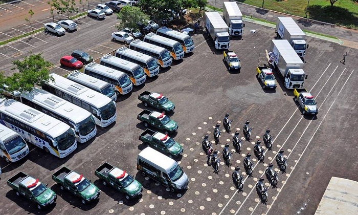 Serão entregues 97 novas viaturas, adquiridas por meio de contratos de locação, que serão utilizadas na atividade de policiamento ostensivo e administrativo, sendo designadas direta e indiretamente para o atendimento ao povo tocantinense. O contrato celebrado com a empresa TB Serviços de Transportes, Gerenciamento, Limpeza e Recursos Humanos, disponibilizará: 03 ônibus, 14 micro-ônibus, 02 vans, 12 caminhonetes, 34 carros e 27 motocicletas. Outros 05 caminhões serão disponibilizados por meio de contrato com a empresa Marca Representações Comerciais Ltda. Os veículos serão distribuídos e utilizados em todas as Unidades da PM no Estado.