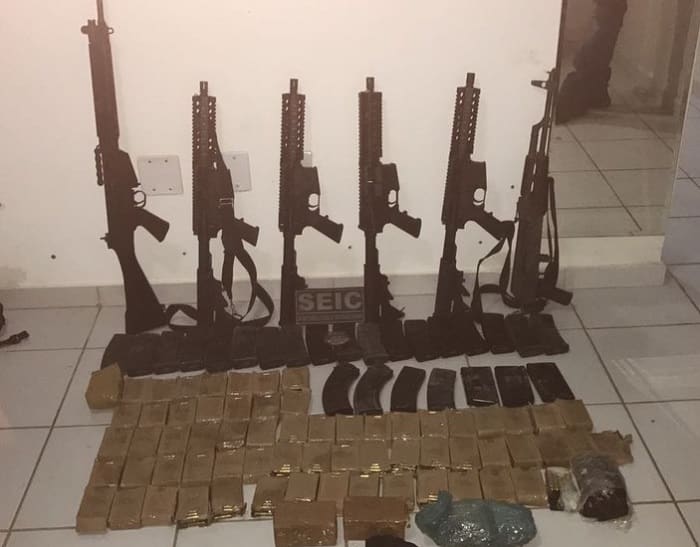 Superintendência Estadual de Investigações Criminais (Seic) anunciou a apreensão de um arsenal que, pelas investigações, seria utilizado por um bando criminoso para assaltar uma empresa de transporte de valores, no Maranhão. O armamento foi localizado em um apartamento na região central de Imperatriz, distante 628 km de São Luís.