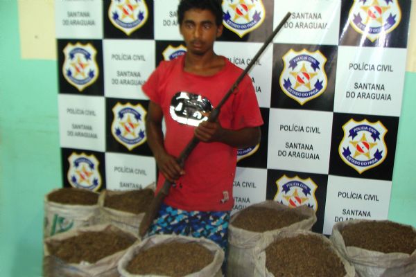 A Polícia Civil fez a maior apreensão de drogas dos últimos anos na região de Santana do Araguaia, sul do Pará. Ao todo, 78 quilos de maconha já ensacados foram encontrados na zona rural do município. No local, o responsável pelo tráfico de drogas, Irismar Vitor de Souza, de apelido “Marzinho”, foi preso em flagrante. Com ele, foi apreendida ainda uma espingarda de calibre 36 usada para reparar a área usada no cultivo da erva.