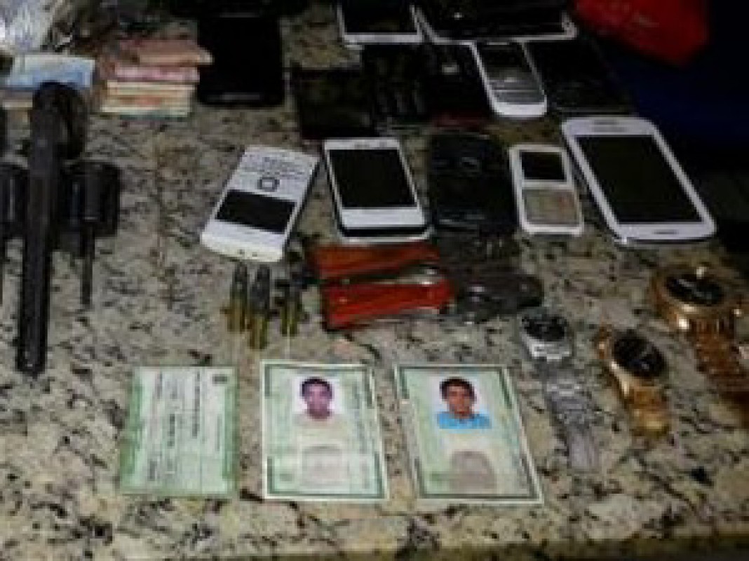 Durante o assalto, os criminosos agrediram fisicamente quatro funcionários do local e em seguida roubaram também uma loja de conveniência em um posto de gasolina no centro urbano. Com eles, a polícia apreendeu um revólver calibre 38, munição, 13 aparelhos celulares e chips, e a quantia de R$ 1.600.