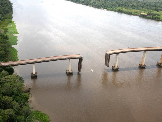 A ponte da Alça Viária sobre o Rio Moju, no Pará, ficará interditada por seis meses. A via ficou muito danificada após uma balsa, que prestava serviço para a Agropalma e transportava 900 toneladas de dendê, ter colidido contra a estrutura da ponte na noite de domingo (23). Com o incidente, foi rompida parte da estrutura, que possui cerca de 900 metros de extensão e 23 vãos. Especialistas analisam se o incidente atingiu apenas o pilar que desabou ou se toda a estrutura da quarta ponte da Alça Viária, com cerca de 800 metros, foi afetada. Durante o período de interdição, duas balsas, disponibilizadas pelo Governo do Estado, farão a travessia dos veículos.