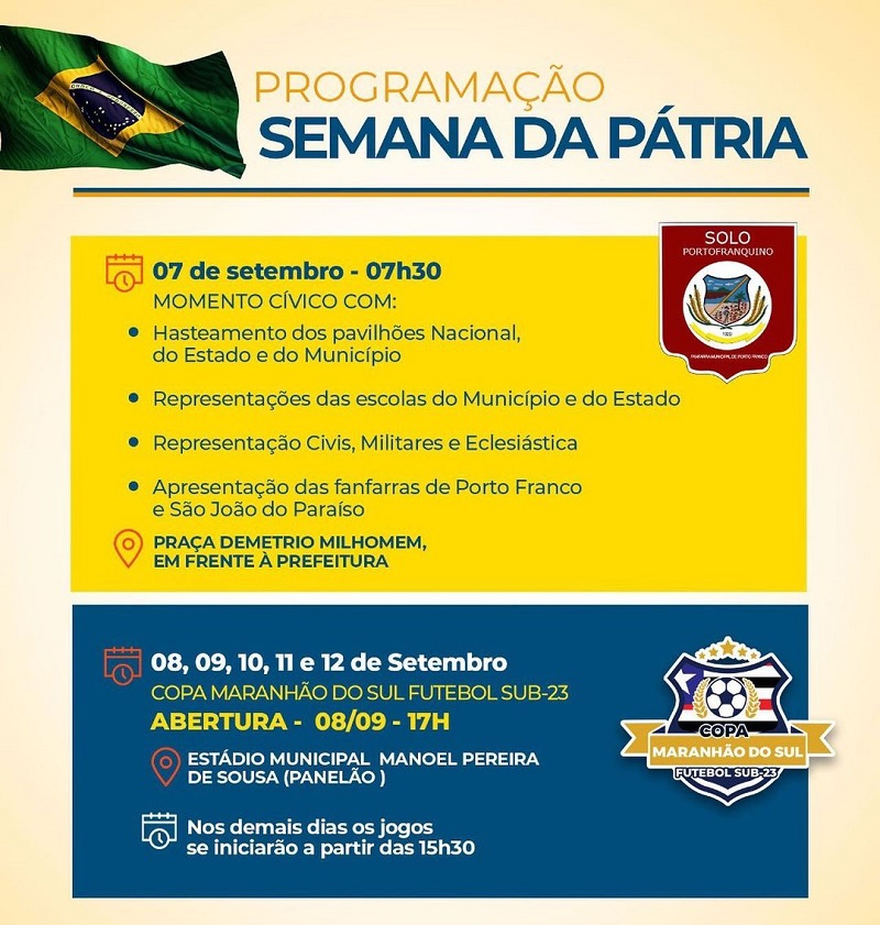 Publicidade Publicidade PORTO FRANCO: Município terá programação no 7 de Setembro By Folha do Bico 6 de setembro de 2021 0 439 Share WhatsAppPrintTelegramFacebookTwitterCopy URL Folha do Bico Noticias Relacionadas Tocantinópolis EC tem elenco regularizado no BID para as semifinais do Tocantinense 2025 16 de dezembro de 2025 Decisão judicial exige plano contra superlotação e falhas estruturais em presídios do Tocantins 16 de dezembro de 2025 ARAGUAÍNA: Réveillon terá shows, DJs e espetáculo de fogos na noite da virada 16 de dezembro de 2025 Share WhatsAppPrintTelegramFacebookTwitterCopy URL Previous articlePORTO FRANCO: Vacinação Covid para 15 anos começa na quarta, dia 8Next articleCapital do Tocantins chega a 50 mil casos de Covid-19 desde o início da pandemia - Advertisement - - Advertisement - Ultimas noticias Inauguração da nova Ponte JK é marcada para dia 22. Lula não confirma presença 16 de dezembro de 2025 PARAUAPEBAS: Mais de 55 mil contribuintes são notificados por débitos de IPTU 16 de dezembro de 2025 ARAGUATINS: Wiston Gomes lidera ranking de emendas destinadas ao Município em 2025 16 de dezembro de 2025 Caminhões envolvidos na obra já fazem travessia na Ponte JK 16 de dezembro de 2025