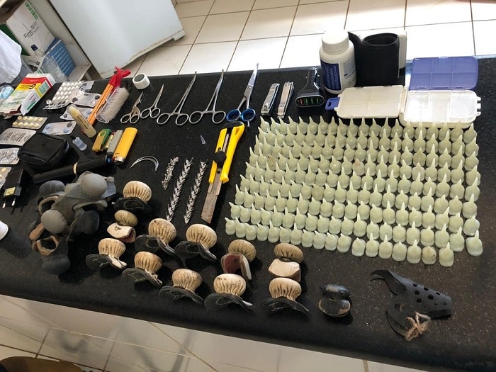 Segundo a Polícia Civil, durante a prisão foram encontrados diversos objetos utilizados na prática criminosa e a suspeita é de que o homem mantinha o local onde os animais eram colocados para brigar até a morte.