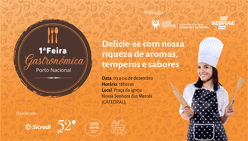 Começa nesta sexta (3) e segue até sábado (4), das 18h às 23h, a 1ª Feira Gastronômica de Porto Nacional. A ação faz parte do projeto de desenvolvimento sustentável do turismo da cidade e objetiva fomentar o empreendedorismo turístico e proporcionar mais visibilidade aos negócios do segmento para a sociedade portuense e turistas que passam pelo município. O evento será realizado na praça da Catedral Nossa Senhora das Mercês, no Centro histórico e é uma realização do Sebrae Tocantins e a Prefeitura de Porto Nacional, por meio da Secretaria da Cultura e do Turismo.