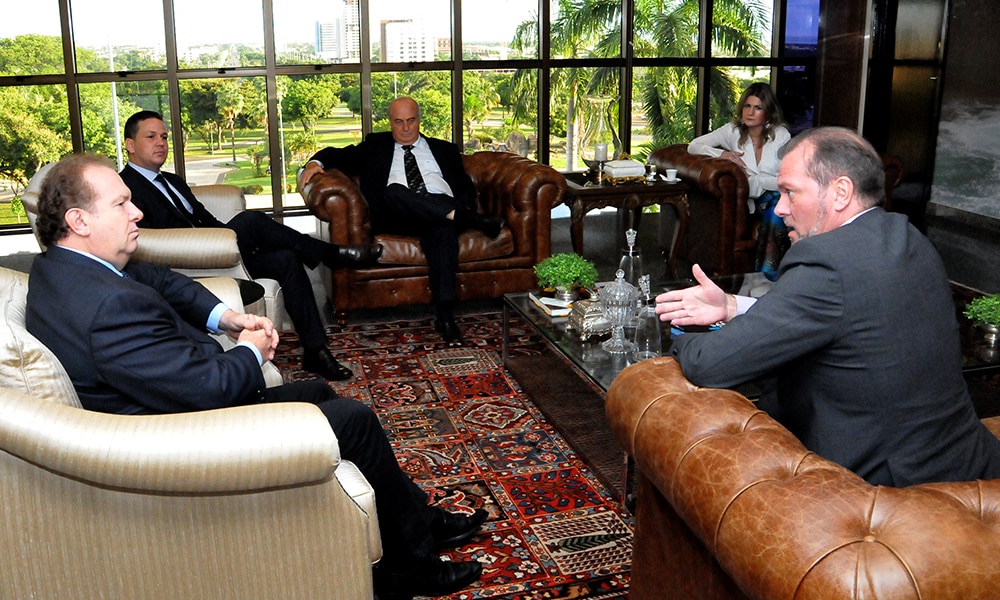 Participaram da reunião, o presidente do Porto de Praia Norte, Klaus Weyand (sentado à direita do Governador); a diretora executiva do Porto de Praia Norte, Sandra Kramer; o empresário da ramo de transportes, Kahuê De Favre (sentado na poltrona à esquerda do governador); o secretário de Indústria e Comércio, Ridoval Chiareloto, e o assessor da Governadoria, José Arimatéia.